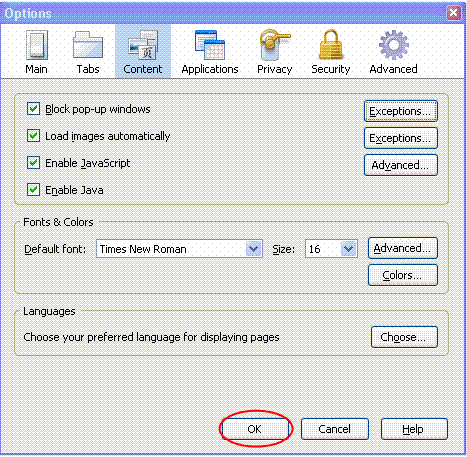 through the HELP commands to allow Popups on