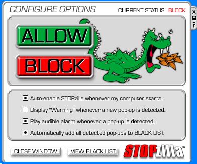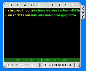 : The list of Blocked/Allowed Pop-ups in STOPZilla