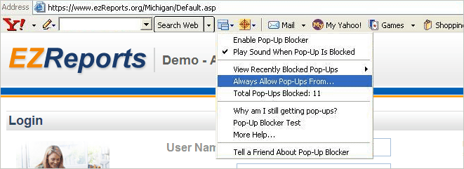 The EZReports software utilizes many popup screens. You need to include the